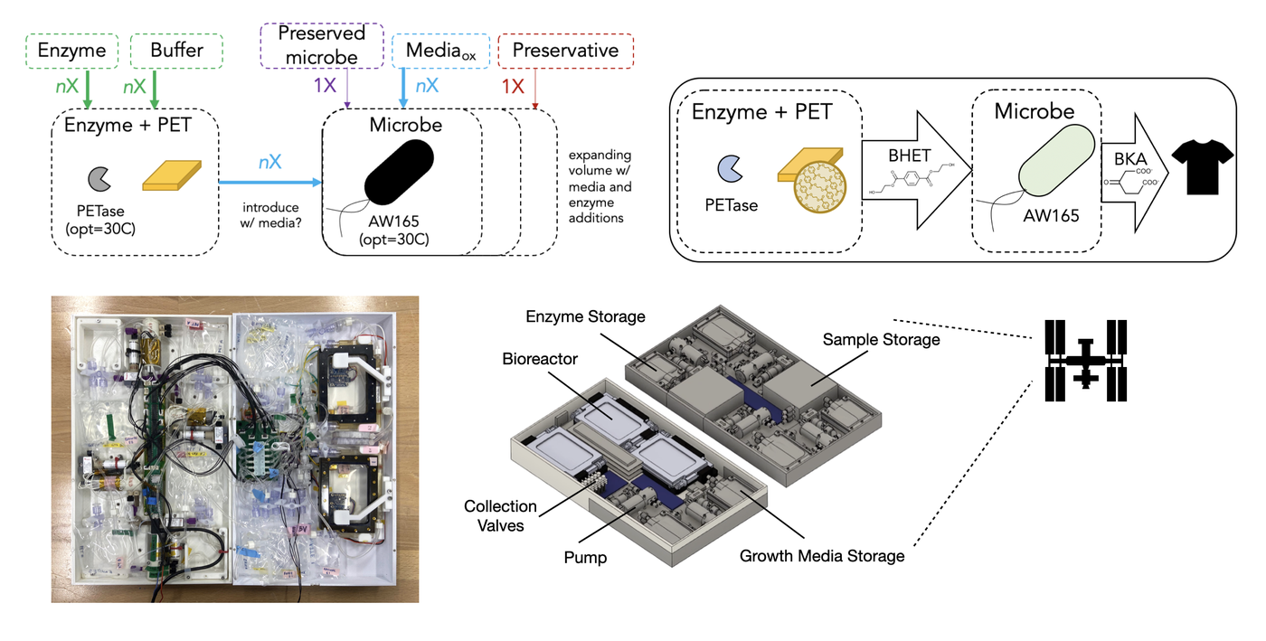 I served as supporting biologist and integrator for a 30-day ISS experiment called MicroPET, investigating microbial and enzymatic degradation of plastics in microgravity, as part of in situ resource utilization research. My role focused on experimental design, validation, and mission integration for the biological payload. The project was recognized as a TIME Best Invention (2023) and Fast Company World Changing Ideas Experimental Finalist (2023). The hardware and protocol are published in npj Microgravity.